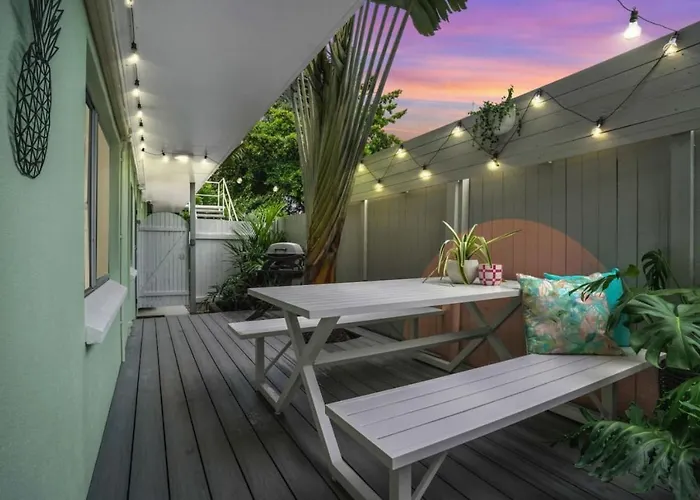The 50 m² Tropicana Pineapple Cairns apartment is located 2.6 km from the Cairns Night Markets and about a 25-minute walk from the Muddy's Playground. Guests can make use of Wi-Fi and complimentary private parking, as well as rent cars to explore the local area.